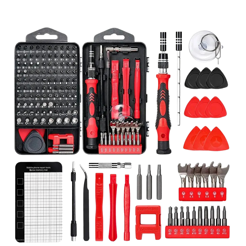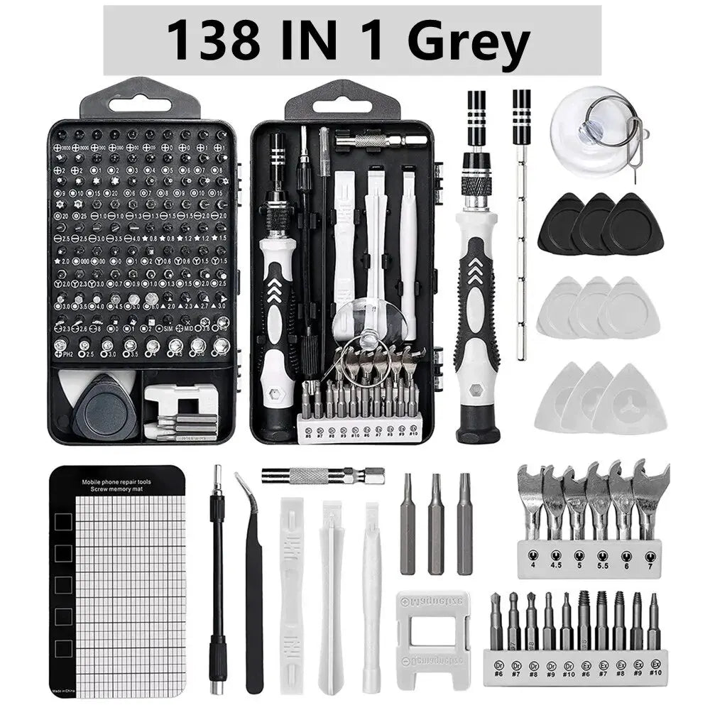 • 138-i-1 Precisionsskruvmejselset: Detta skruvmejselset innehåller 138 olika typer av skruvmejslar, vilket gör det till en mångsidig verktygssats för alla typer av reparationer.